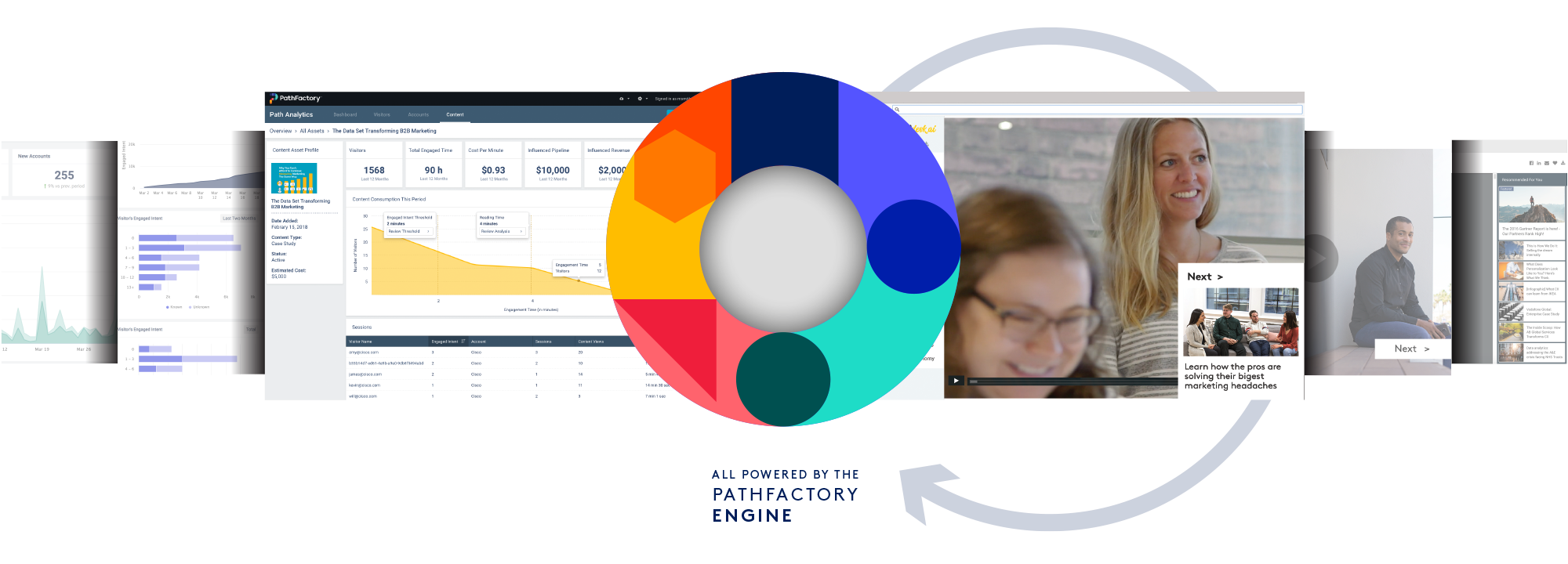 The brain of the PathFactory platform, the Engine gathers external visitor and account data sets, analyzes content using AI, and combines that information with session engagement data to build a full understanding of the role content plays in the buyer’s journey and its impact on pipeline and revenue. The Engine uses this data and insight to activate content and connect buyers with the most relevant information when they need it.